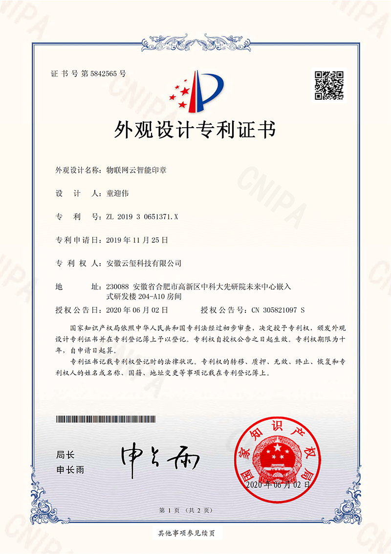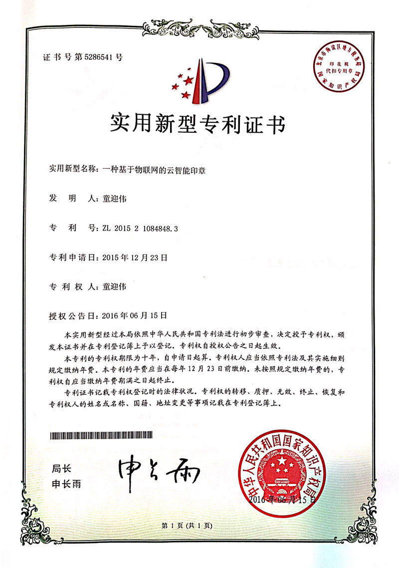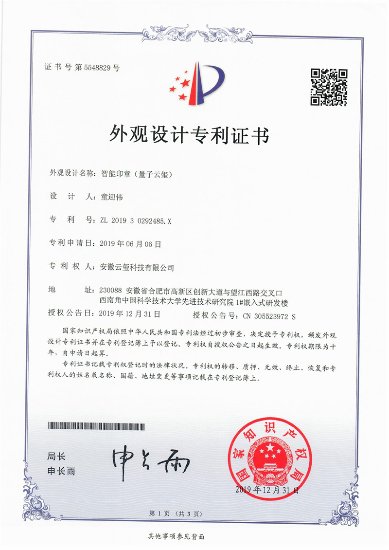公司原創(chuàng)發(fā)明一體式智能印章技術,引領國內外新一代智能印簽創(chuàng)新變革。獲中日韓多項發(fā)明專利,徹底解決了實體印章和電子印簽管控的社會難題,獲國務院國資委全國央企熠星二等獎。公司聯合國家信息安全產品認證中心、公安部三所、信通院、中國印章協會等,主導起草了行業(yè)首個智能印章安全認證標準和智能印章產品標準,引領了智能印章行業(yè)發(fā)展。